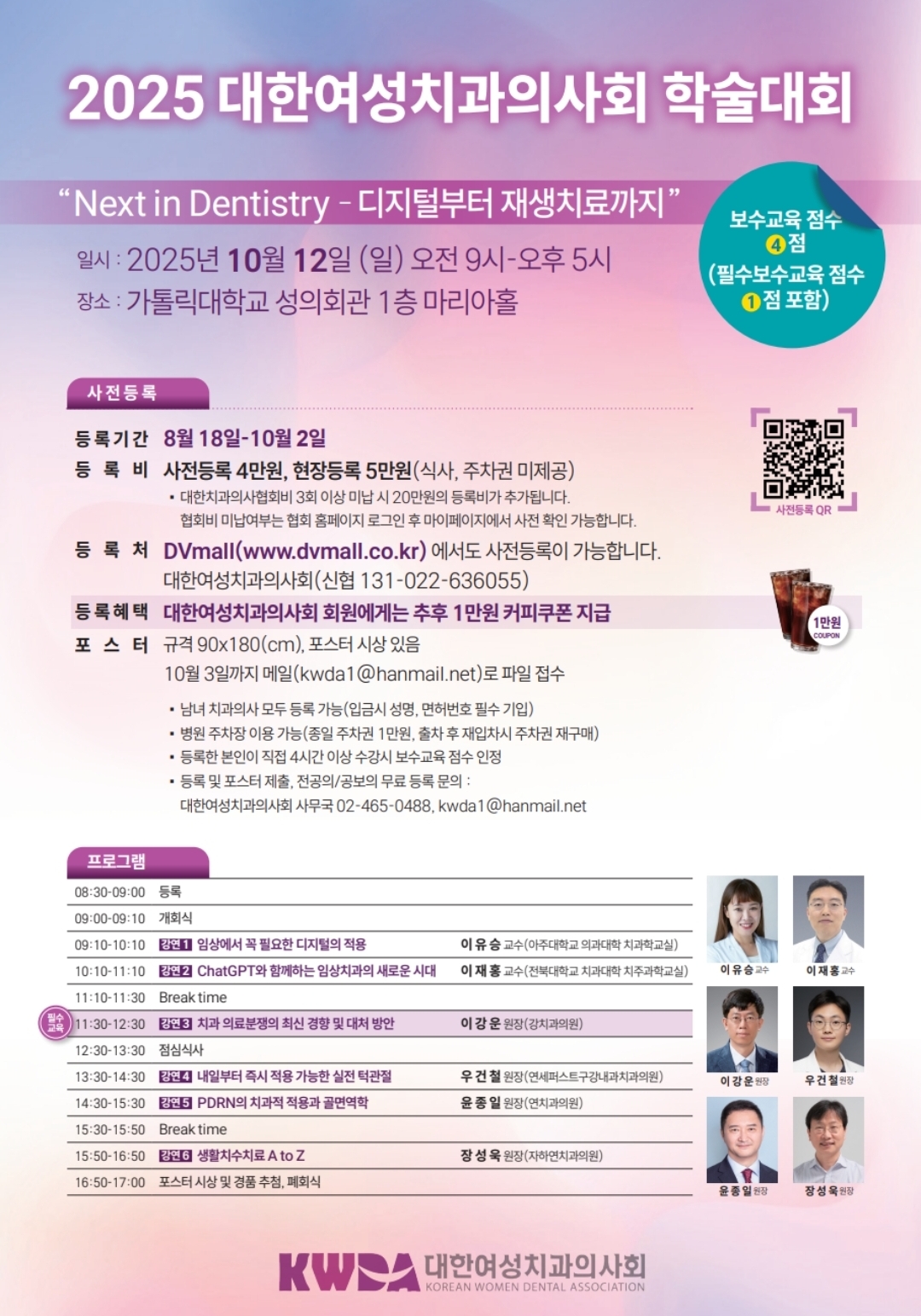 대한여성치과의사회, '디지털부터 재생치료까지' 아우르는 2025 학술대회 10월12일
